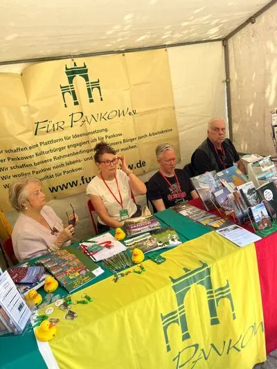 Zum diesjährigen „Kunstfest“ der GESOBAU 14./15.06.25Unser Verein FÜR PANKOW war auch in diesem Jahr – gemeinsam mit dem tic – auf dem „Kunstfest“ mit einem Stand vertreten – die Besucher strömten – die Sonne schien/Musik spielte von verschiedenen Bühnen/für Essen/Trinken war ebenfalls ausreichend gesorgt.Unser Regierender Bürgermeister, Herr Kai Peter Wegner, eröffnete – gemeinsam mit dem Geschäftsführer der GESOBAU, Herrn Lars Holborn, am Samstag das Fest voller Farbe/Lachen/Herz.Gäste kamen aus allen Nachbarbezirken/auch England war vertreten – haben sich über die Ausrichtung unseres Vereins informiert und Interesse an einer Mitarbeit bezeugt – dazu lag der Entwurf eines neuen Flyers mit dem Thema: „Engagiert für unseren Bezirk – mach mit im Verein FÜR PANKOW“ - bereit.Brigitte GlogerFür den Vorstand FÜR PANKOW e.V.